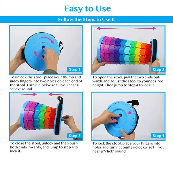 Enjoy instant seating on the go with the Portable Telescopic Stool! This adjustable, foldable, and lightweight stool extends in seconds, providing sturdy and comfortable support wherever you need it. Perfect for camping, fishing, traveling, concerts, hiking, or even home use, it folds down compactly for easy carrying & storage.